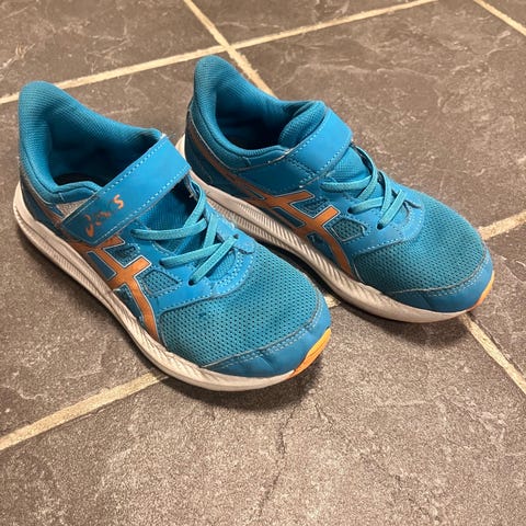Asics joggesko str 33.5, men litt små, som 32.5-33. Pent brukt som innesko. Selges kr 50 + evt frakt