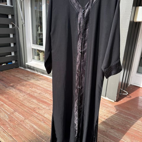 Denne elegante svarte jalabaen er dekorert med vakre gullbroderier, noe som gir plagget et ekstra eksklusivt preg. I tillegg har den lommer, som gjør den praktisk og komfortabel. Jalabaen er perfekt for både hverdag og festlige anledninger, med følgende mål: