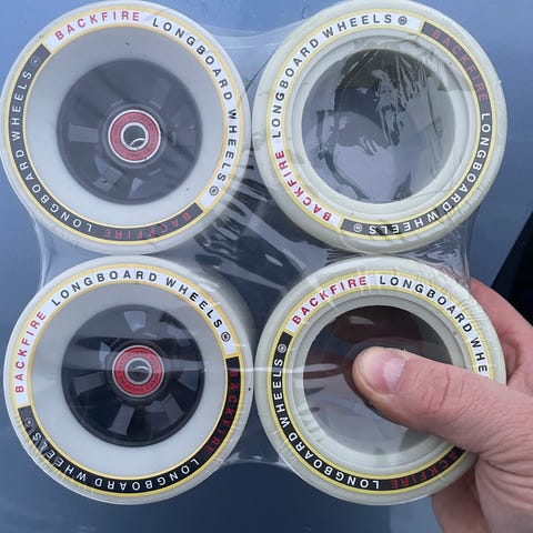 Noen bruksmerker etter grinds, men antakelig flere kilometer grinding gjenstår før de er brukt opp.