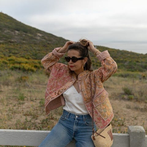 Nydelig indisk blokkprint quiltet jakke