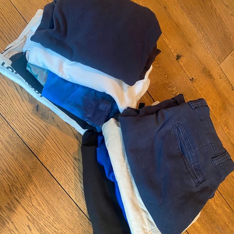6 shorts, 1 T-skjorte som hører til ene shortsen og en pysj