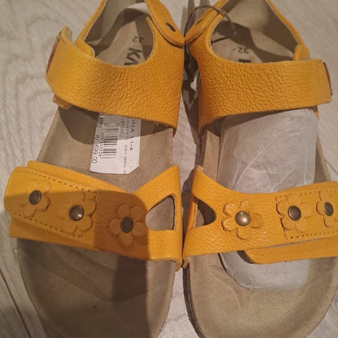 Oker-/sennepsgule sandaler med myk såle.