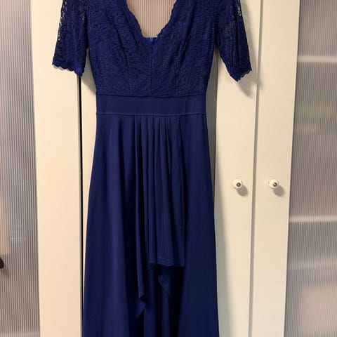 Kjole i havfrue fasong uten ermer. Kjolen er i kraftig kvalitet og bare brukt en gang. Blonde stoff I halsutringing og nederst på kjolen. Utrolig fin på.