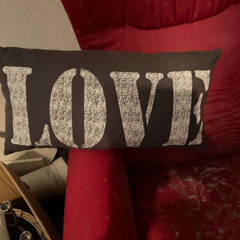 Lite brukt lys pyntepute med bilde av kanin. Glitter på kaninen. Lite brukt og bare ligget på senge til datteren en periode. Med innerpute. Litt støv på den, men ingen flekker