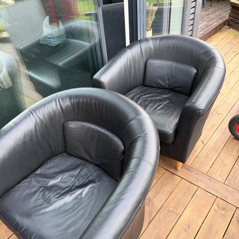 Fin IKEA lenestol og fotskammel. Den har dessverre fått noen kloremerker fra en katt vi hadde tidligere, se bilde. Bortsett fra det er stolen svært lite brukt og i fin stand, den har hele tiden stått i en TV-stue vi ikke bruker mye.