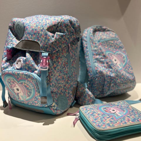 Pent brukt skolesekk fra troll of norway. Brukt i 2.og 3.klasse. Den er i fin stand og har vært pent brukt. Noen merker foran som antakeligvis går av ved en vask 😊 selges som den er. Følger med regntrekk