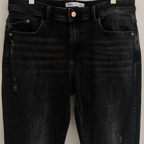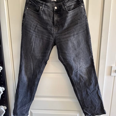 Røff jeans / dongeribukse fra HM+ i sort/koksgrå.