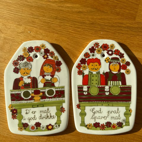 Hele og pene.Håndmalt.Klar til å henge opp, hull øverst. I meget god stand.