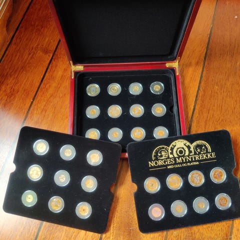 Totalt 29 mynter med eierbevis og hefte med beskrivelse av hver mynt. Myntene er fortsatt innpakket og ligger i en beskyttende eske.