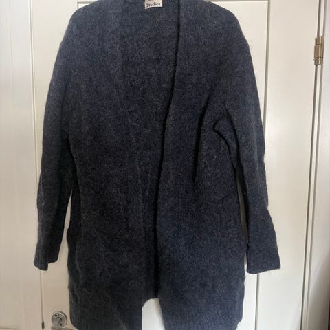 Acne Raya short mohair cardigan størrelse XXS (disse er romslig i størrelse), carbon black, selges kr 800,- Lite og pent brukt. Nypris 2500,-