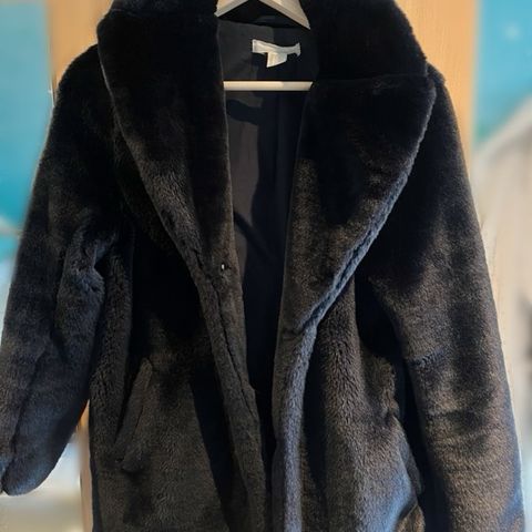 Superkul pelsjakke i pelsimitasjon, str M. Kun brukt et par ganger.