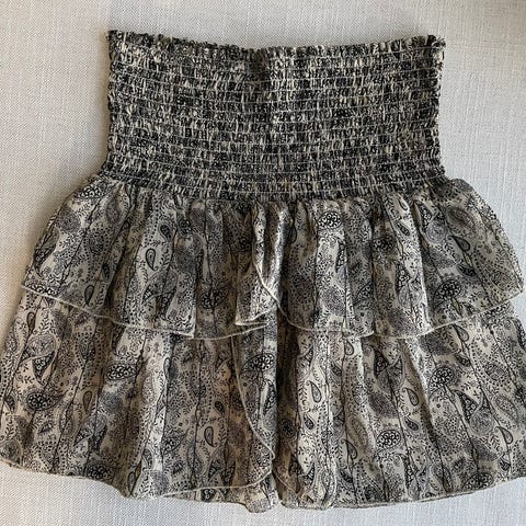 Levete room skjørt med vaffelstrikk i livet, str. L. Mønster i sort/hvit/beige. Pent brukt.