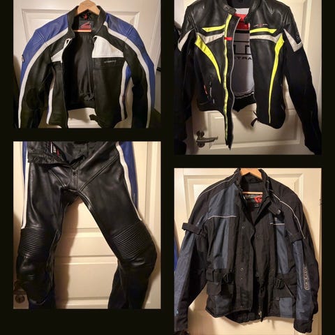 Dainese Springbok Absøluteshell, Størrelse 60. Ny pris 9000kr. Jakken har store panel på bryst og rygg som kan åpnes for gjennom lufting. Der er også stor lomme utvendig på ryggen. Modellen er 3 lags, som vist i ene bildet. Der er 2 innvendige jakker som kan taes ut separat.