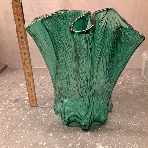 Flott glassvase i mørk blå og mot hvitt. Tungt glass så står stødig og fin til enkle buketter.