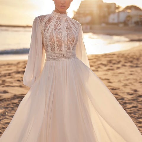 Vakker, enkel og elegant brudekjole. Sitter fint på en str 42 til 46. Jeg er litt mellom alt.