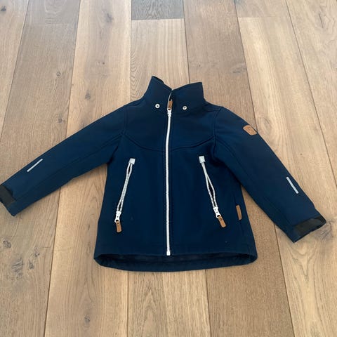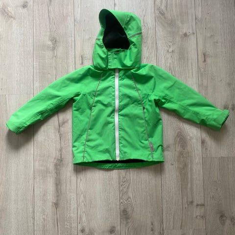 Skalljakke fra Reima str 110 i godt tilstand selges rimelig. Litt slitasje opp i halsen (se på bilder) med zip funger bra.