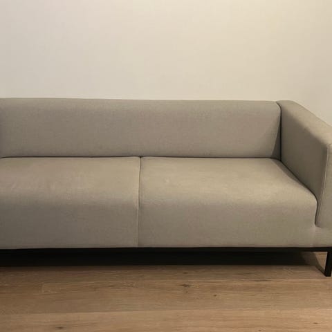 Sofaen er 2-3 år gammel. Pent brukt, ingen bruksmerker. Fargen er grå, stoffet er av gjenbruks plast:) Ny pris på sofa er 12999,- Må hentes. Står pr. d. dato i Hedmark