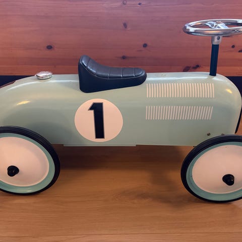 Gåbil/ sparkebil i retro design i en nydelig gul farge som passer like godt til jente og gutt.