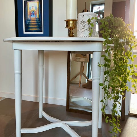 Gammelt bord av eldre årgang (ukjent årstall, men tipper 50-tallet) Har vært i familiens eie i alle år - er malt i nyere tid. Heltre med finér bordplater. Kr 250. Må hentes