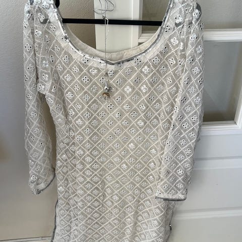 Full brodert kamiz med sharara (plazzo) suit til salgs!Kun brukt en gang. Pakistanske indiske fest klær