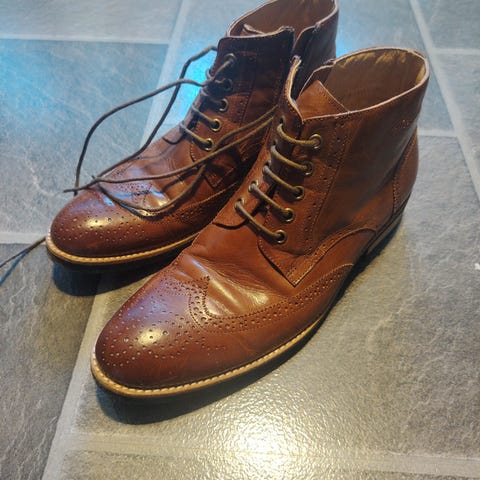 Svært lite brukt Dahlin sko i ekte skinn. Sjeldne og spesielle. Meget god stand, brukt bare ved enkelte anledninger. Kostet ca kr 1500,- , selges for kr 250,-.