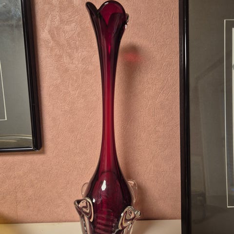 Flott vintage vase med hank fra tidligere Øst-Tyskland (GDR). Spesiell glasur med lava-innslag.