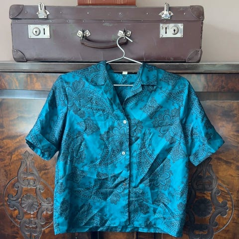 Selger en pent brukt vintage Eton skjorte. Str 36 på lappen, men stor i str. Nydelig blåfarge. Fine detaljer på skuldre og legg på sidene.