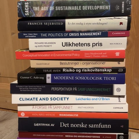 Alle bøkene jeg brukte til bachelorgrad i sosiologi med spesialisering i samfunnsikkerhet.