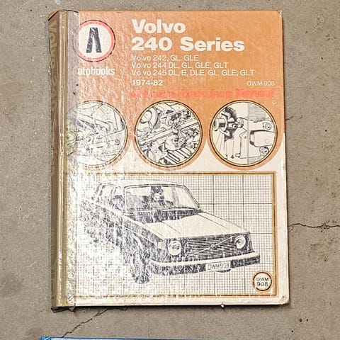 Volvo 740 instruksjonsbok med omslag og forhandleroversikt.