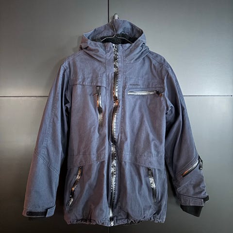 Meget pent og lite brukt foret jakke fra Skogstad. Str 5XL. Avtagbar hette med stramming. Glidelås lommer. Borrelåsstramming på ermene. Strammestrikk i kanten nede. Mørkegrå farge. Ikke vasket. Kan sendes mot porto.