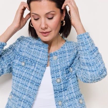 Fin penbukse med strekk i livet. Rette vide ben. Blå skinnende farge.