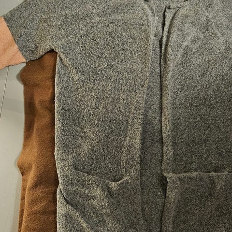 Heil lengde bak 52 cm, heil lengde framme 35 cm, brystvidde 104 cm.