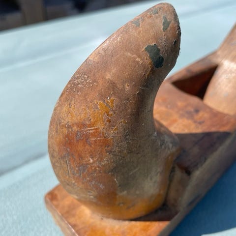 Gammel hjemmelaget høvel til høvelstål på 15mm. Årstallet 1867 er skåret inn på den ene siden av høvelen. På motsatt side av høvelen er initialene OFS skåret inn. Svært sjelden å finne slike gamle høvler med årstall. Lengde 21cm. Bredde 5cm. Håndtak 35cm. Stål på 15 mm må man skaffe selv.