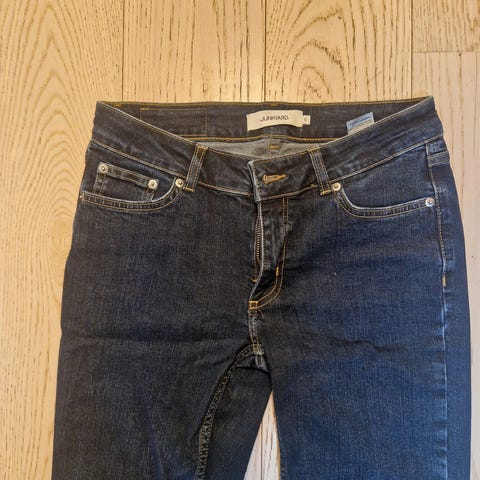 Kjempefin jeans fra Junkyard i størrelse L!❤️ Svært pent brukt uten bruksmerker (bare brukt noen få ganger). Selges fordi den dessverre ikke passet meg helt❤️
