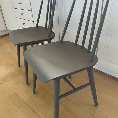Department Wood H17 pinnestol, grå, 2 stk, selges samlet. Nypris 1099,- Selges 500,- Minimalt brukt, mest stått i veien og vært støvsamlere, men noe slitasje må påregnes fra et hjem med små barn. Kjøpt på Rum21. Hentes på Fevik.