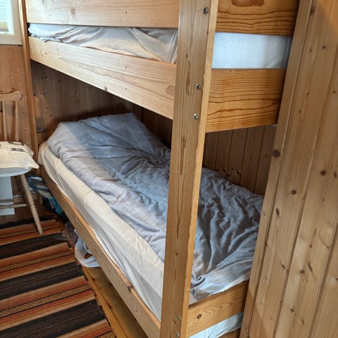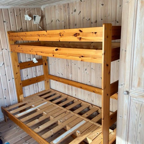Selger denne nydelige køyesengen av god kvalitet som passer fint til både barn og voksne. Den har få bruksmerker og ser relativt ny ut. Det følger også med skuffer under sengen til oppbevaring. Den er enkel og skru sammen. Send gjerne mld for spm eller flere bilder💕