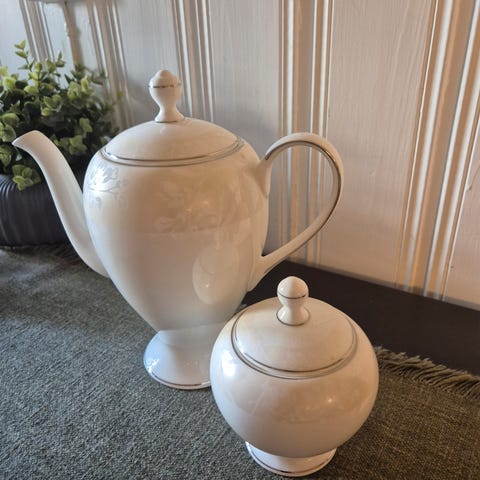 Gammel te/ kaffekanne I porselen . Kannen har varmebeholder som settes over kannen. Hel og pen. Høyde opp til toppen på kannen 20 cm. Merket krautheim bavaria, Germany.