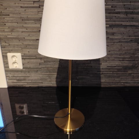 Pen høy bordlampe med pen hvit (offwhite) skjerm. Lampen er pent brukt og fremstår som ny. Lampen er kjøpt på Lampehuset. Pen lampe.
