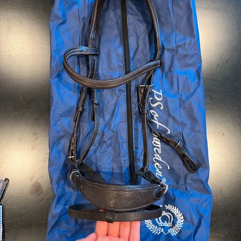 Hakerem ny til PS hodelag str F kr 100 og neserem brun kr 40 bra lær