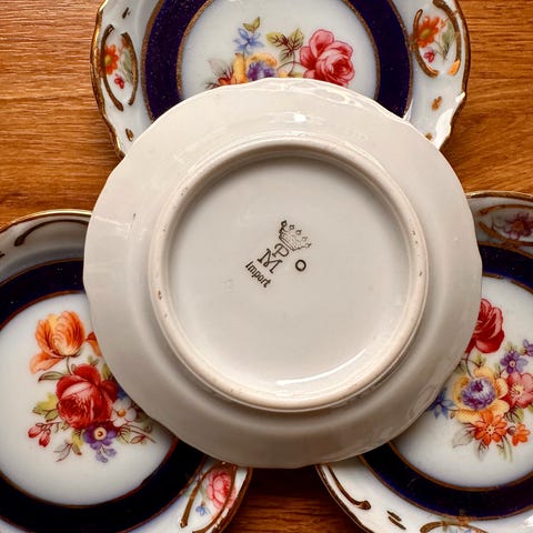Nydelige krukker / spiserrisett kjøpt i antikvitetsbutikk. Jeg vet ikke nøyaktig alder.