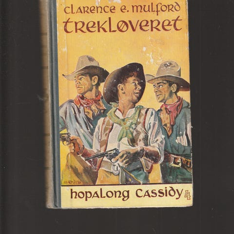 Hopalong Cassidy , Her kommer Hoppy , bok nr 5 fra 1952. Hel og fin. Litt slitasje. Se bilder. Kan sende.