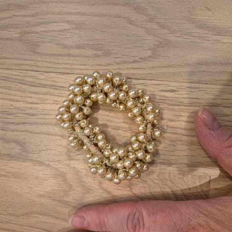 Stor hårstrikk / scrunchie og blomsternål, begge er sorte