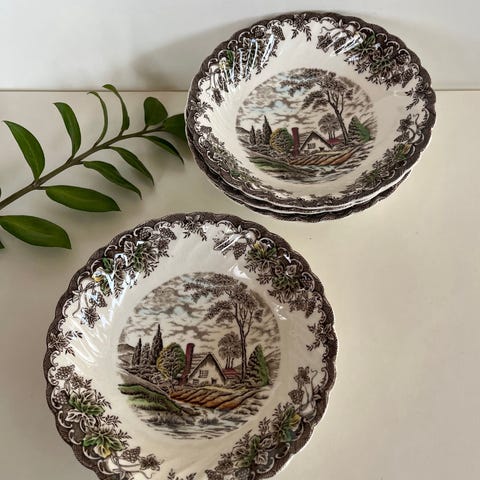 Vintage middagstallerken og suppeskåler fra Staffordshire England