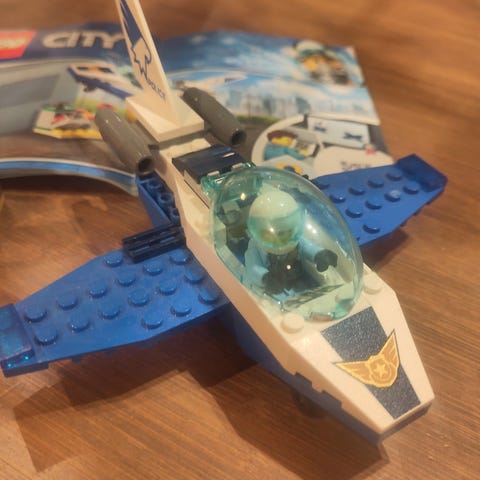 Komplett sett, men tyvens hode er byttet ut ( se bilde). Med instruksjoner, uten eske. Fin gave i f.eks. julekalender.