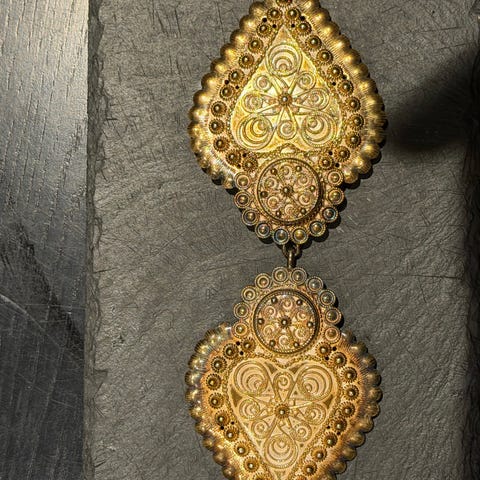 Gammel sølv spenne med stavkirke på. Handlaget og flott arbeid.
