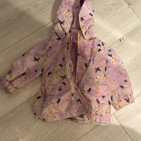 Tynn jakke til barn fra H&M med avtagbar hette og glidelås. Type «vindjakke», men ganske tynn og lett i stoffet.