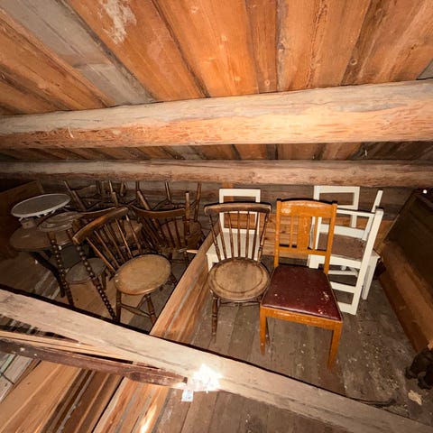 Vurderer salg av sjelden 1700-talls topp til kannestol, hvor vindu er mellom hyllene.