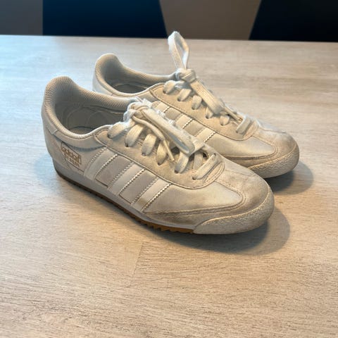 Adidas Dragon originale sneakers i blå, str 38. Synlig brukt mtp flekker noen steder som mulig kan vaskes bort. Det bør skites nye lisser da disse er noen flekker på, mulig det kan fjernes med vanish.