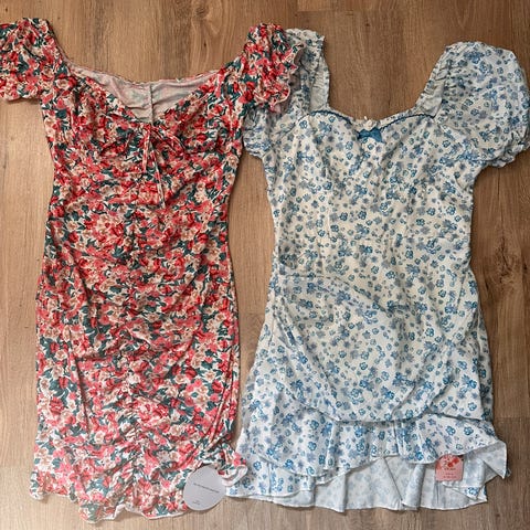To søte kjoler, str. XS fra Bikbok, og str. XXS fra HM Divided. Rosa og lilla. Selges samlet.