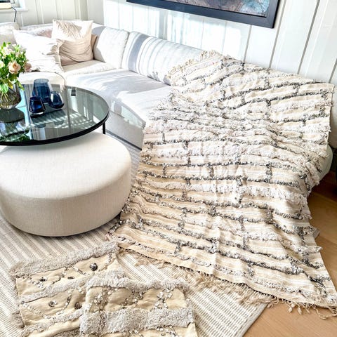 Autentisk Handira Berberteppe, et luksuriøst symbol på kjærlighet og tradisjon i marokkansk kultur. Mål: 140*90 cm